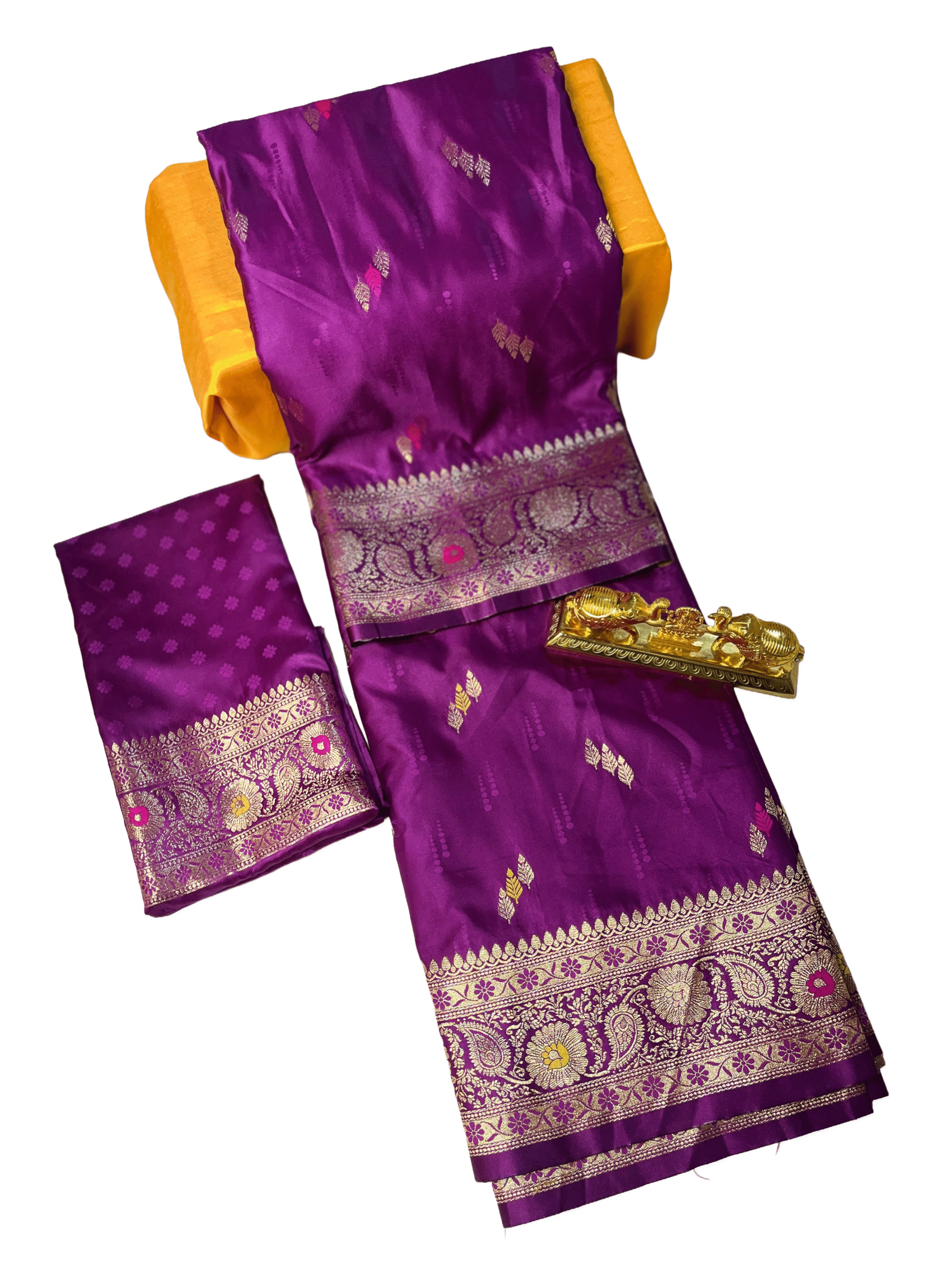 Blouse: Matching royal purple blouse piece with zari-look border